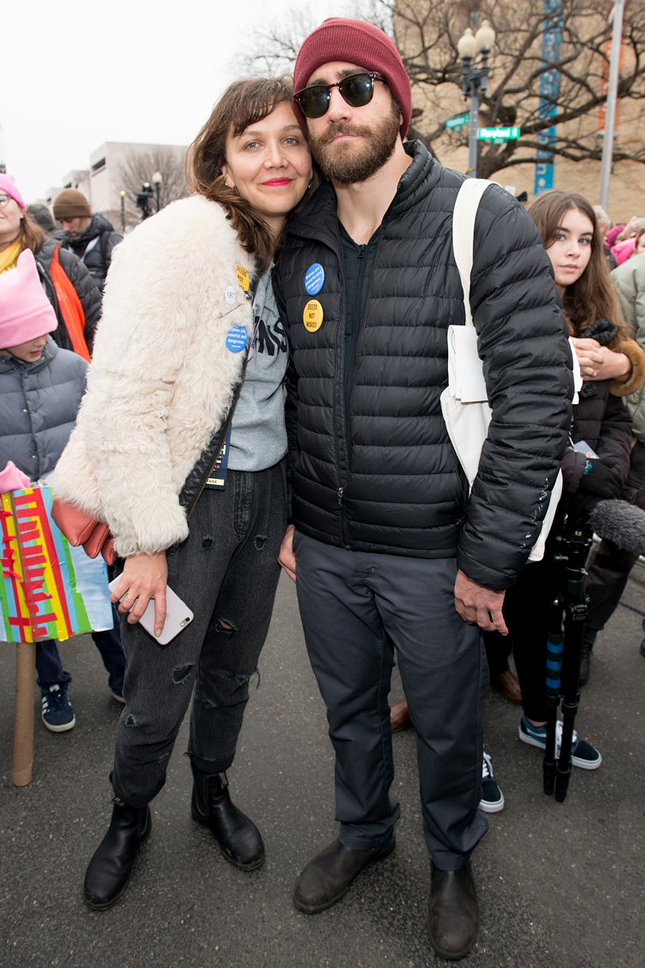 Мэгги и Джейк Джилленхол на женском марше в Вашингтоне