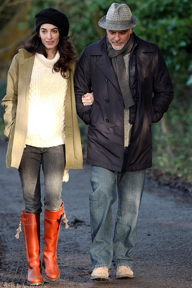 Амаль и Джордж Клуни на прогулке в английской деревушке